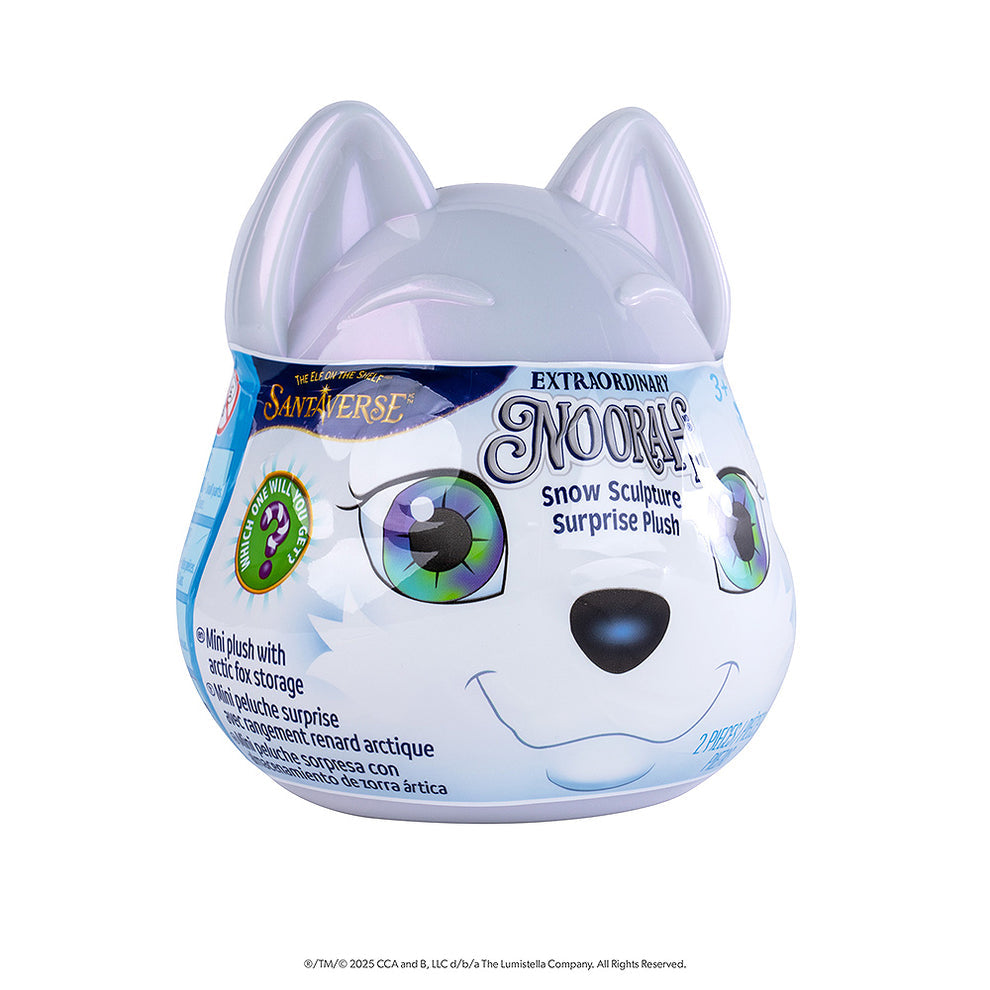 Not only does Noorah® pause time and spark the northern lights, but this oldest and most trusted friend of Santa also stirs up fantastical snow creature friends with her enchanted tail! Open the molded toy arctic fox head to unveil an adorable plush Noorah snow sculpture inside. Collect all four and trade with friends for endless imaginative play!