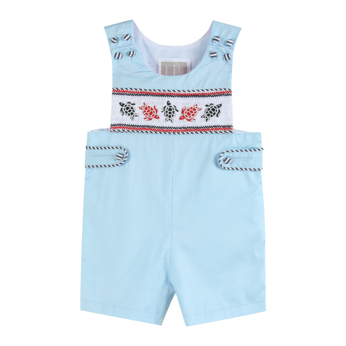 Blue & Red Turtle Applique Smocked Shortalls