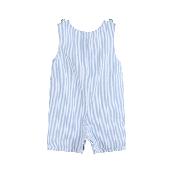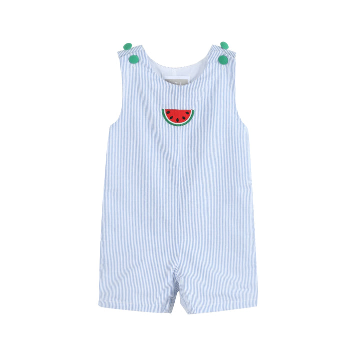 Make the summer days a little sweeter with these light blue seersucker shortalls! Bright and colorful with a watermelon applique, these shorts are perfect for any little boy who wants to bring a little extra flavor to his outdoor adventures. Awesome for the beach or the park, they've got a delightful summertime feel that can't be beat!