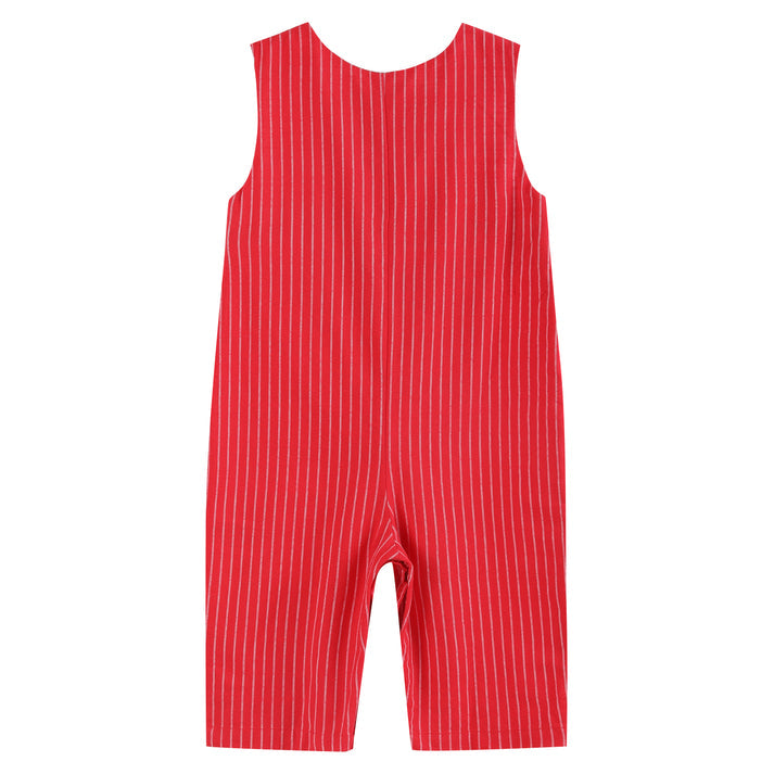 Elevate your little boy's holiday style with our adorable Red Overalls featuring a beautifully smocked panel adorned with intricately embroidered Christmas Trees. Crafted with care and attention to detail, these overalls exude the spirit of the festive season. These sweet overalls come equipped with convenient snaps at the crotch for easy diaper changes, ensuring that your little one can stay comfy and merry throughout all your holiday festivities.
